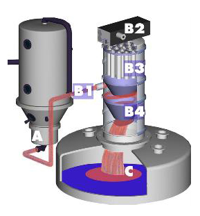 1、氣動控制器控制真空泵B2啟動,在分離倉內(nèi)產(chǎn)生真空,迅速將空氣和物料從A(進料位置),經(jīng)軟管或管子從B1(吸料口)進入到B4(真空輸送設備)中,從而達到輸送物 料的目的。