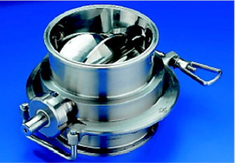 氣動轉(zhuǎn)閥的閥芯安裝于上罐體出口處。在轉(zhuǎn)閥閥體圓柱形通道內(nèi),其特有的星形葉片繞著軸線按正、反兩方向作180°旋轉(zhuǎn),既可達到均勻放料的目的,又可有效防止泄料現(xiàn)象的發(fā)生。